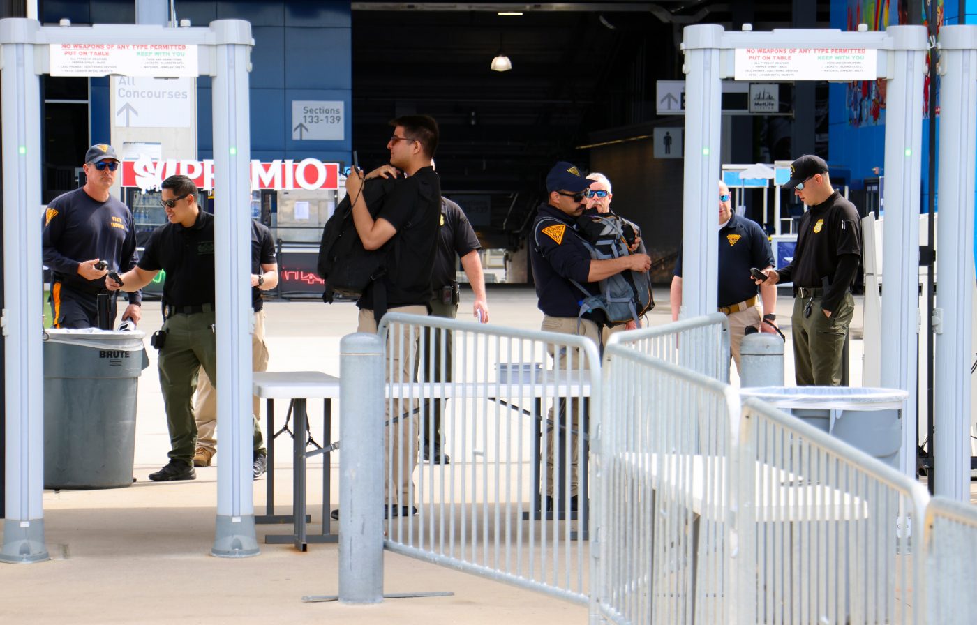 In the training exercise, participants performed a pre-screening operation, sweeping the arena’s seats, stands and parking lot.