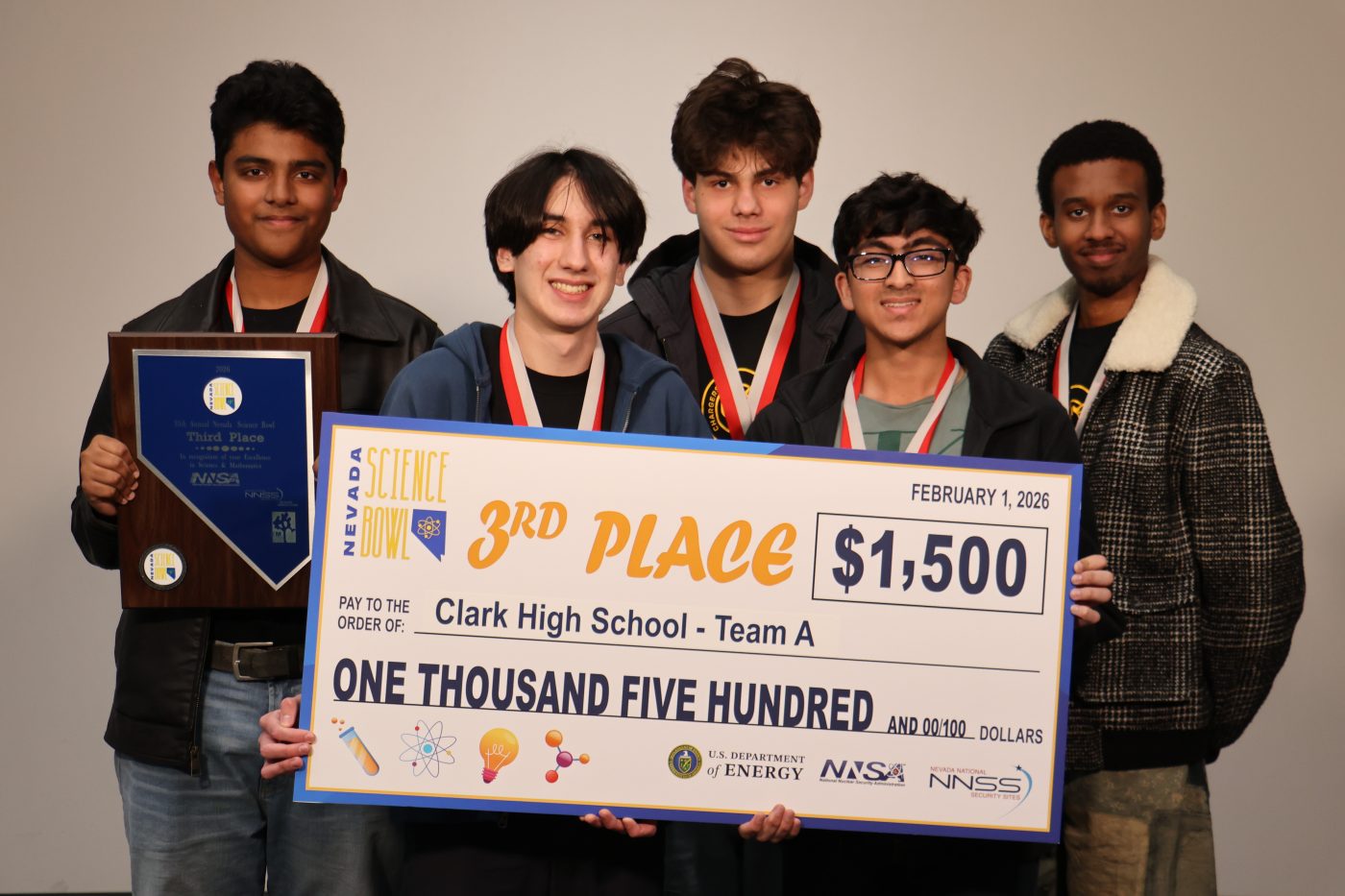 Davidson Academy took top honors for the seventh year running, netting a $5,000 cash prize for their school’s math and science departments and earning the right to represent Nevada at U.S. Department of Energy (DOE) National Science Bowl in Washington, D.C. in April. Hug High School placed second to take home a $3,000 cash prize, while Clark High School (Team A) came in third and earned a $1,500 cash prize.